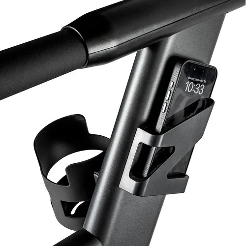Pantalla LED retroiluminada que muestra velocidad, distancia, watts, frecuencia cardíaca*, calorías y más.