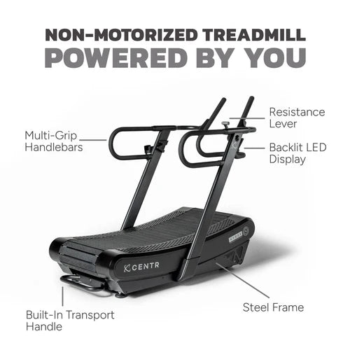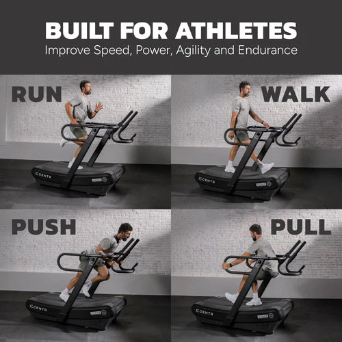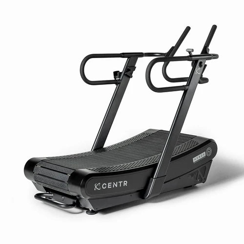 La Centr x HYROX Perform Treadmill es una máquina de correr sin motor diseñada para atletas y para alcanzar un rendimiento de alto nivel. Este diseño curvo sin motor fomenta una postura adecuada, mientras que su superficie acolchada y con absorción de impactos maximiza la resistencia y la energía para que conquistes tus carreras y simulaciones de empuje de trineo.
